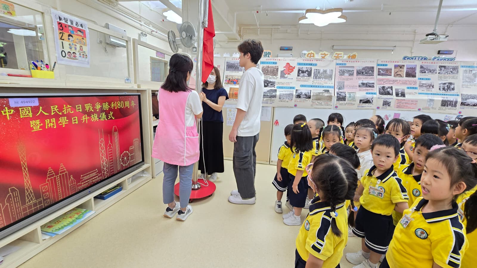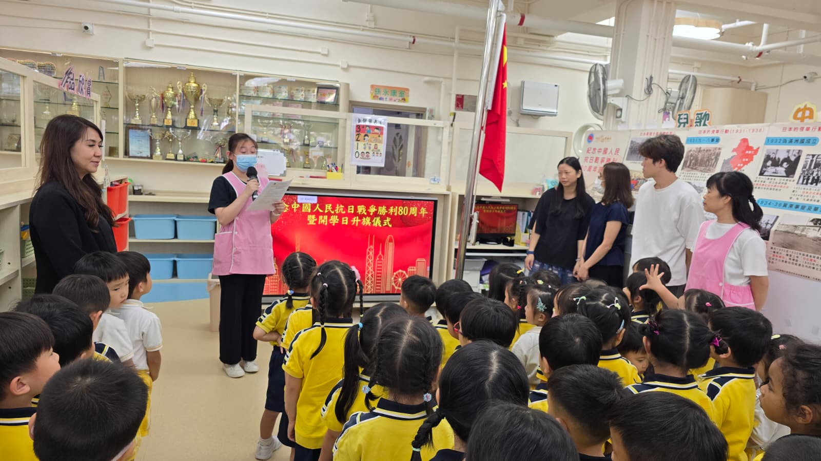 Flag-raising ceremony to commemorate the 80th anniversary of the victory of the Chinese People's War of Resistance Against Japanese Aggression and the opening day of school